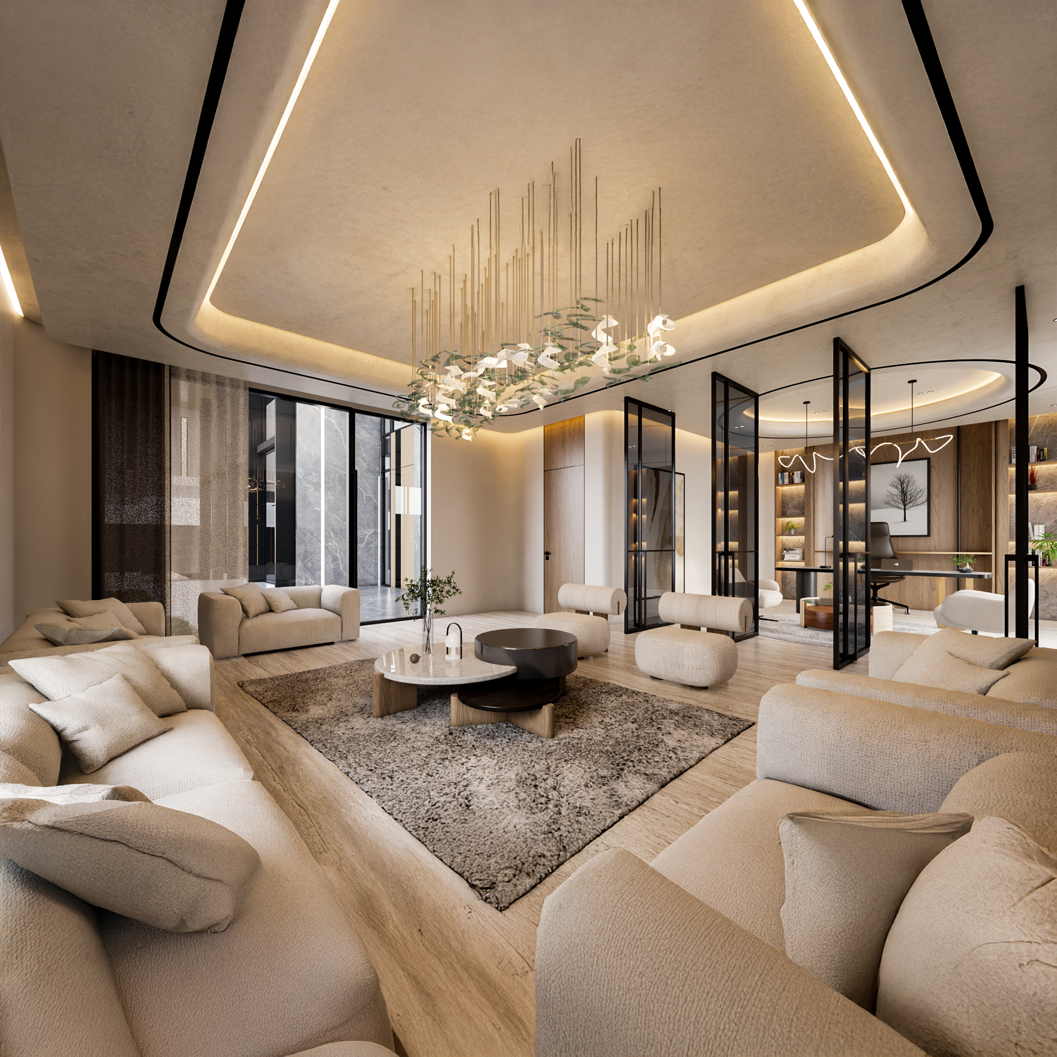 Our approach focuses on the intersection of architectural structure and soft materiality. By strategically placing bespoke furniture and utilizing reflective organic surfaces, we ensure every corner of the residence serves as a sanctuary of calm.